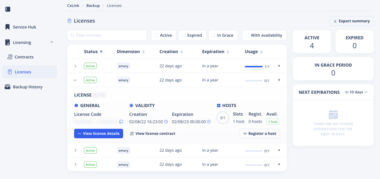 If your SAP Database server has internet access, you can connect the agent directly with the License Mananger in the CxLink Portal and the agent will retrieve a license automatically and will take care also of any license modification, renewal or revoke of it.