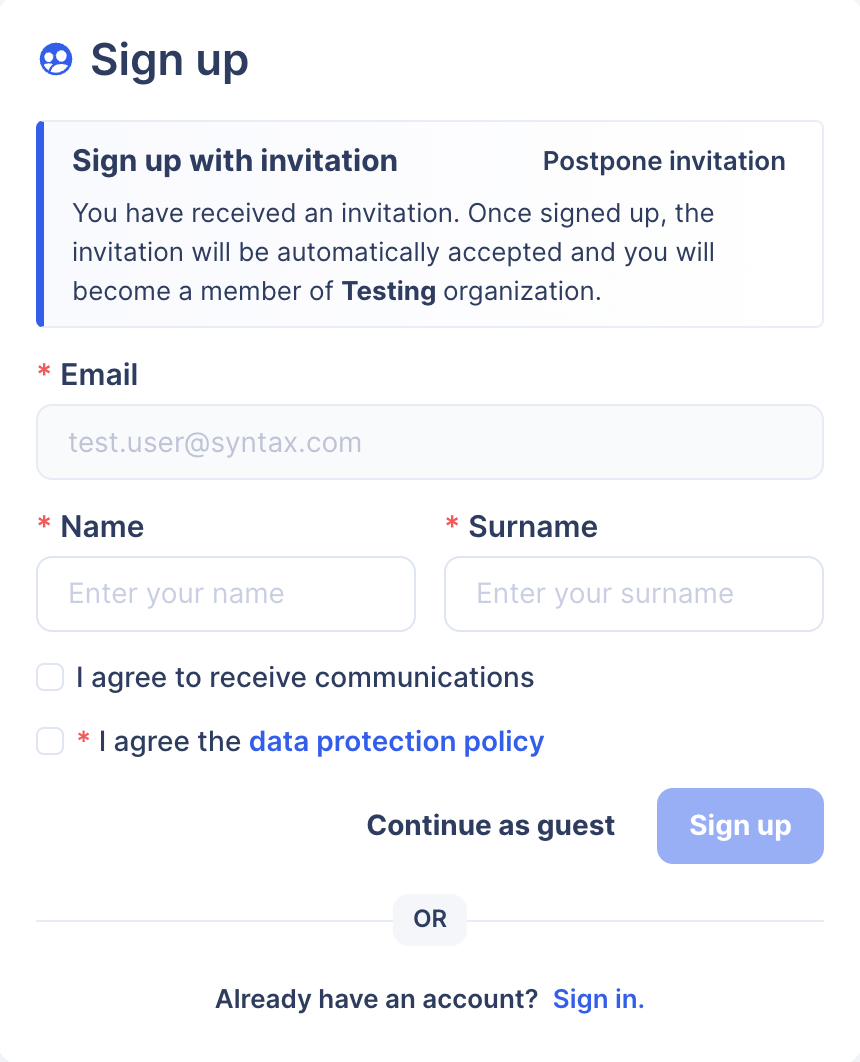 In any case, submitting in this form, the invitation will be automatically accepted, and the user will become a member of the organization.